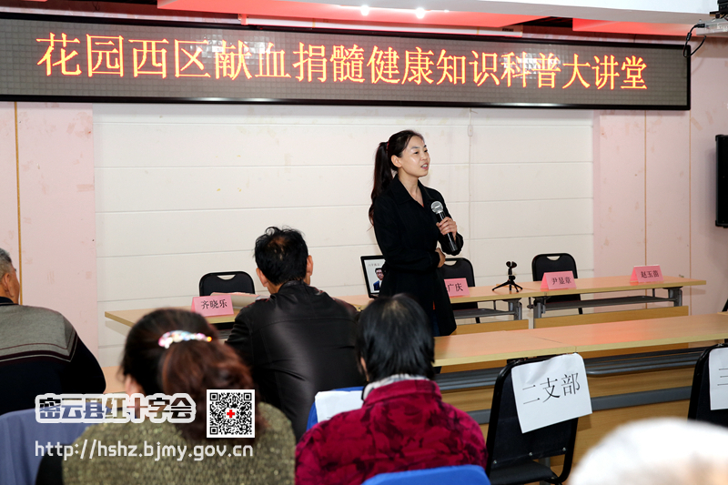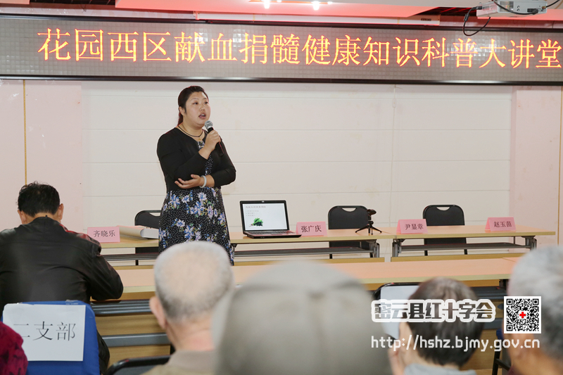 图为:密云县鼓楼社区卫生服务中心的主治医师郭宇环宣讲《造血干细胞捐献知识分享》