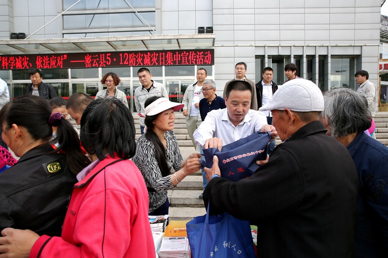 5月12日上午,密云县红十字会同十余个单位一起在我县文化活动广场联合开展“防灾减灾日”集中宣传活动。常务副会长任建华、秘书长尹显章带领红十字会各科室相关人员参加了此次活动。本次共设置展板2块,发放紧急避险、灾难现场的自救互救知识光盘、急救手册、造血干细胞宣传折页等材料共10种5000余册。聘请两名市级红十字应急培训讲师解答现场群众咨询、演示徒手心肺复苏技术和创伤包扎等操作技能。通过开展多种形式的集中宣传活动,不仅为群众普及了防灾减灾和自救互救技能还宣传了红十字会的宗旨 及各项业务工作,取得了良好成效。