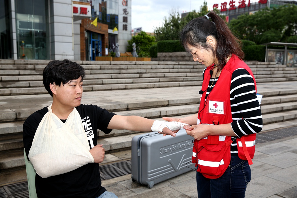 为提高公众防灾减灾和自救互救能力, 5月12日上午,bet365官网网址与民政、民防、消防等十余个单位一起,参加了区应急办在我区文化活动广场组织的主题为“减少灾害风险,建设安全城市”集中宣传活动。本次共设置展板2块,发放紧急避险、灾难现场的自救互救、造血干细胞宣传折页、红十字70问等材料共10种5000余册。聘请两名市级红十字应急培训讲师解答现场群众咨询、演示徒手心肺复苏技术和创伤包扎等操作技能。通过开展多种形式的集中宣传活动,不仅为群众普及了防灾减灾和自救互救技能,还宣传了红十字会的宗旨及各项业务工作,取得了良好成效。
