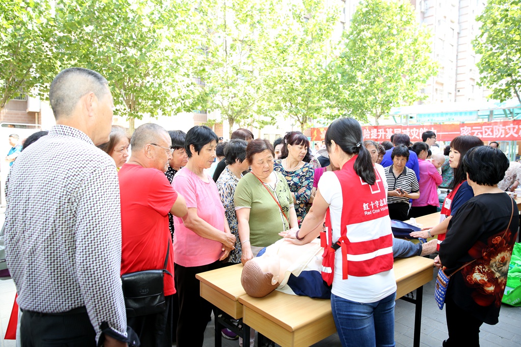 本次活动在鼓楼街道向阳西社区举行,共设置展板2块,发放紧急避险、灾难现场的自救互救、造血干细胞宣传折页、日常急救手册、防范恐怖袭击与自救互救指南等材料共10种5000余册。