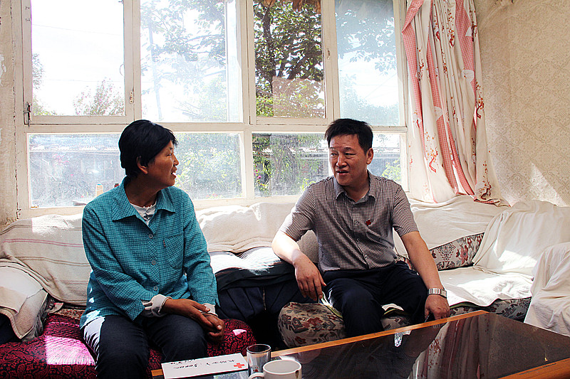 图为:县红十字会常务副会长郭春友、不老屯镇红十字会会长郭玉荣一同看望大病困难患者